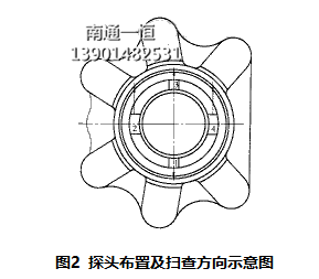 由于后桥材料为碳钢,且经探伤后要进行机械加工,因此选用机油作为探伤耦合介质,自动探伤时,由油泵均匀连续地供给机油介质,在组合探头上设有出油孔,靠近各个分探头,保证在探头和被测表面之间形成均匀油膜。